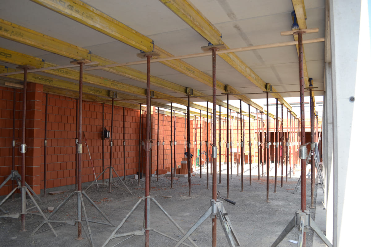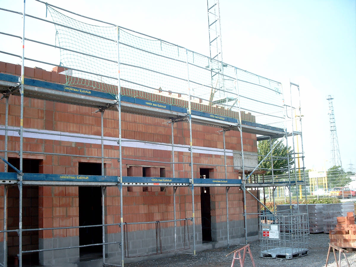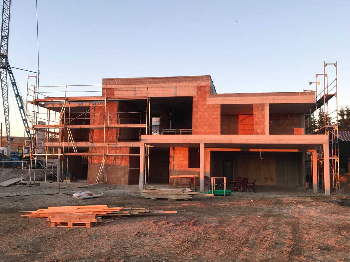 Folgende Leistungen können wir anbieten: Verlegung der Kanalrohre für den Abwasseranschluss, Herstellen der Fundamente und der Bodenplatte, Wände mauern, Decken legen – kurzum alle Arbeiten bis zum Dachstuhl. Ist ein Schornstein eingeplant, gehört auch dieser zum Rohbau.